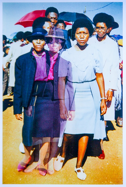 Veleko’s fellow Market Photo Workshop alumna, Katlehong-raised Lebohang Kganye – one of a new generation of contemporary artists born shortly before or after the demise of apartheid – is represented through two photographs digitally juxtaposing portraits of her mother with photographic copies the artist has re-enacted by posing like her whilst dressed in her clothes.
