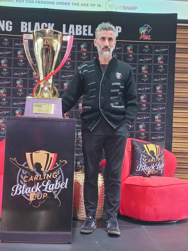 Image Mdu Mphahlele (Former serial Bucs Cup coach winner Jose Riveiro, returns to SA, having led the Carling All-Star team to back-to-back triumphs in the Carling Cup in 2023. He’s recorded with Carling Black Label’s Brand Director- Kerryn Greenleaf, at the media launch in Sandton, today).