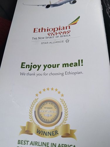 Image SLM (The menu on offer aboard the Ethiopian Airline, hours-long from OR Tambo Int’l to Addis Ababa and connecting to Milan, thirst-quenching. An undeniable, goosebump experience).